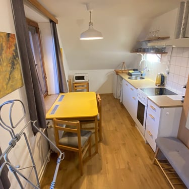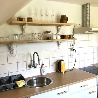 k dispozici je plně vybavená kuchyň se sporákem, kde je kafe, čaj, cukr, sůl